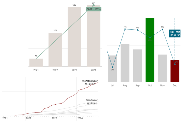 - Extinderea formelor geometrice (shapes): Acum pot fi adăugate forme în graficele de tip Bare și Combo, nu doar în cele de tip Linie.